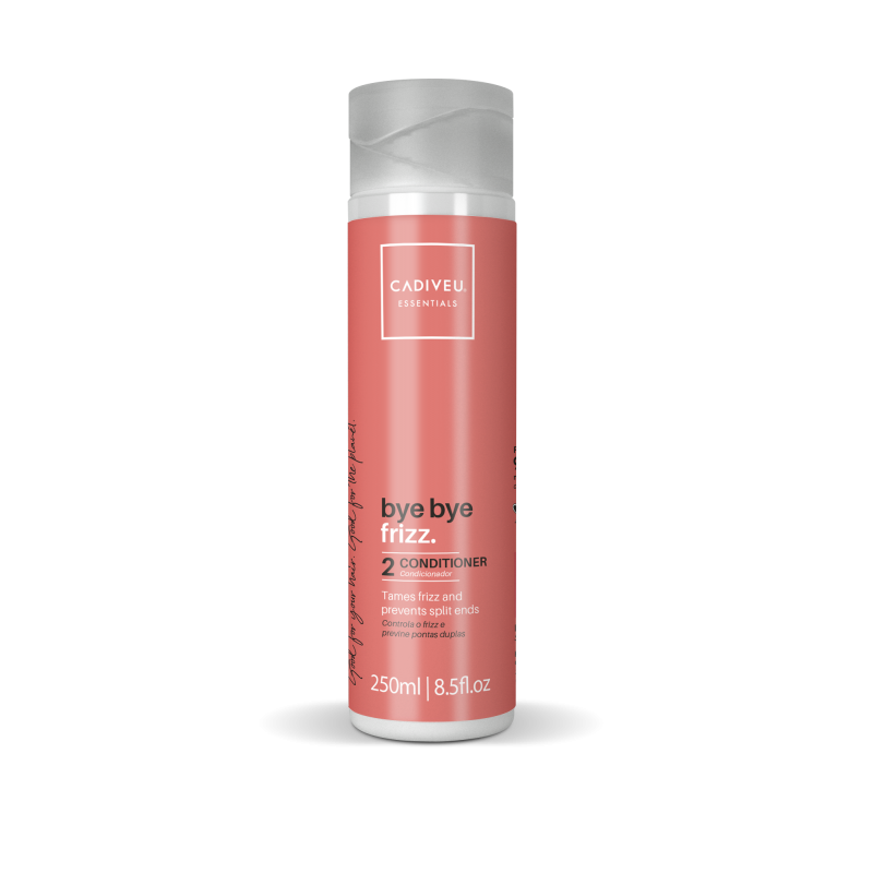 Conditioner Bye Bye Frizz formulé avec de l'huile de camélia favorise la nutrition, augmente la brillance, prévient les pointes fourchues et contrôle les frisottis. Ce conditioner est certifié Vegan, approuvé par l'association PETA, son emballage provient à 100% de produits recyclés et sa composition est à 97% d'origine naturelle.