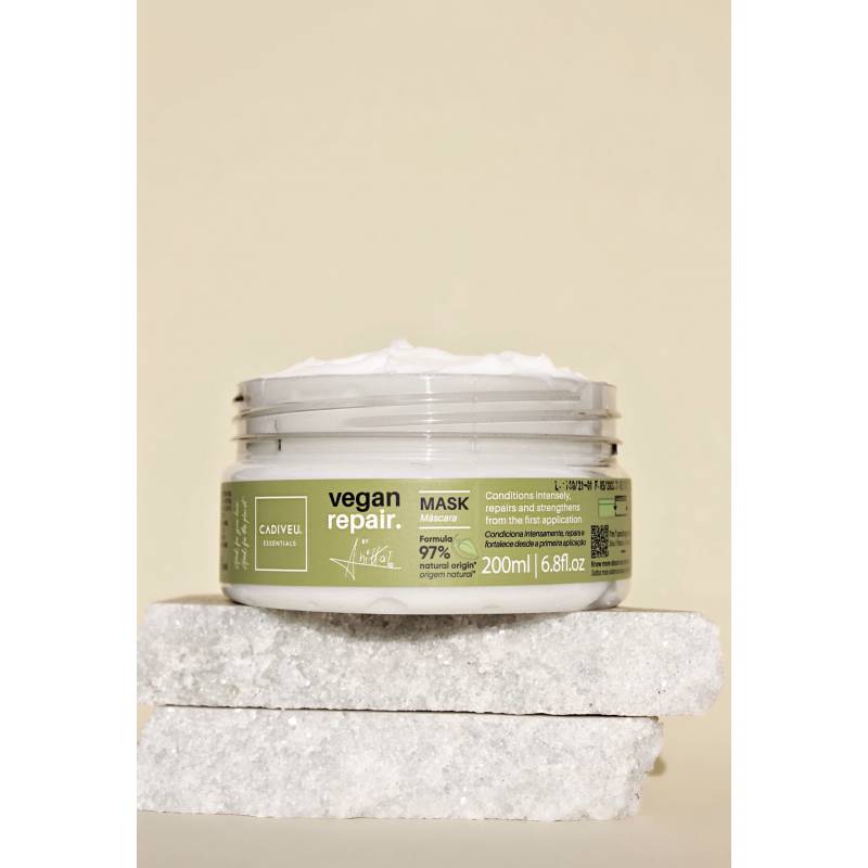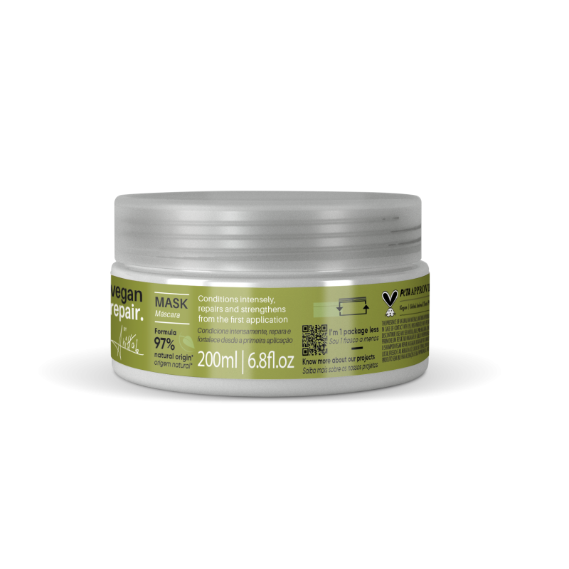 Masque Vegan repair qui reconstitue les nutriments essentiels des mèches et favorise un résultat inégalé de cheveux super puissants, réparés et résistants. Ce masque est certifié Vegan, approuvé par l'association PETA, son emballage provient à 100% de produits recyclés et sa composition est à 97% d'origine naturelle.