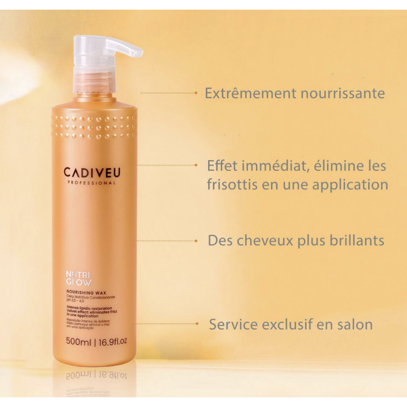 Pour encore plus d’effet, vous pouvez finir avec la routine Nutri Glow complète, shampoing, masque et leave-in en spray.