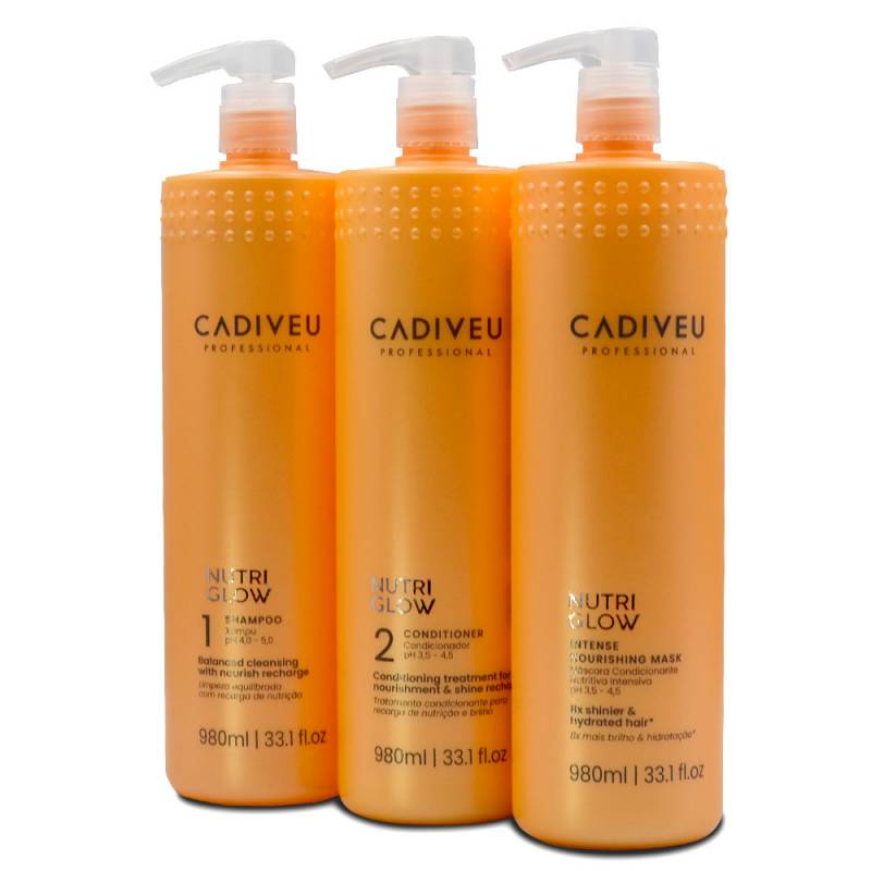 Le kit professionnel Nutri Glow de Cadiveu est un différentiel pour le marché. Possédant la technologie Oil Elixir, ces produits contiennent dans leurs compositions plus de 12 types d'huiles nourrissantes qui garantissent la revitalisation de vos cheveux. Il s'agit des huiles de coco, de macadamia, d'argan, de karité, de calamus et autres.